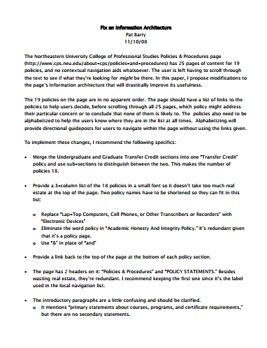 In this paper I recommended navigation for a policies web page that is 24 pages long and has no